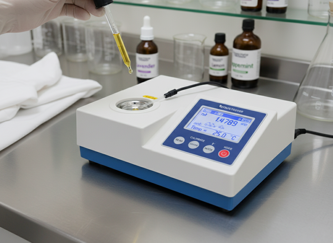 Used to measure the refractive index of oils, blends, and concentrates.
