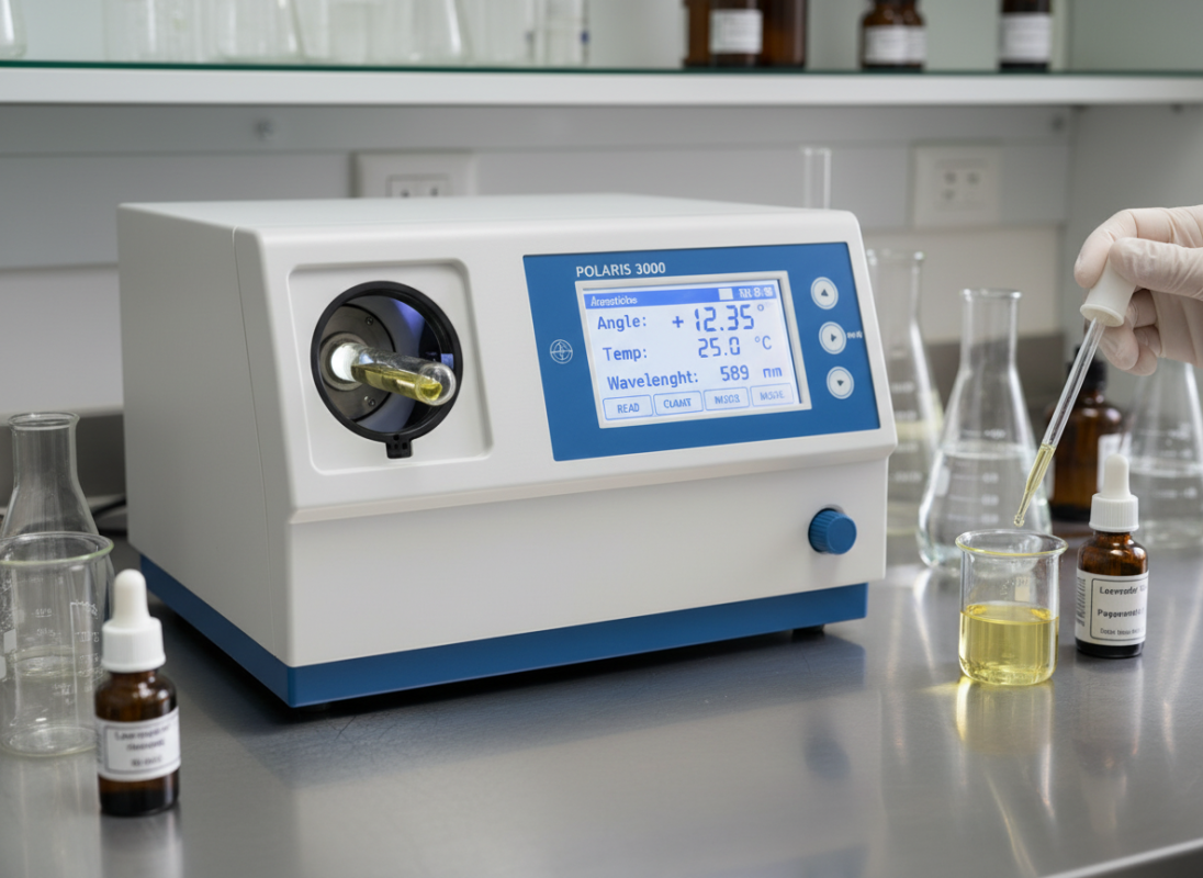 Measures optical rotation for essential oils and isolates.